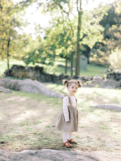 If your session takes place in the fall, while it might be tempting to dress your little one in a pumpkin costume to eternally remember the cuteness that babies in costumes in giant piles of leaves holds, I advise keeping attire a little more neutral.
