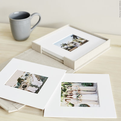 Our matted prints are the perfect way to physically hold your prints while having that heirloom quality to show off on your coffee table.
